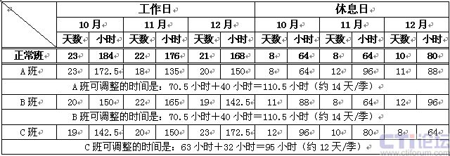 1)正常日班人員:主要的工作時間是8:00~16:00,該班組人員是固定在這一時間段內(nèi)工作,不另作安排。