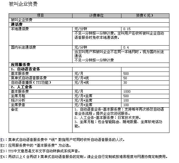 如95、96、12xxx,被叫企業(yè)通話費和應(yīng)用服務(wù)費按虛擬呼叫中心業(yè)務(wù)資費執(zhí)行。