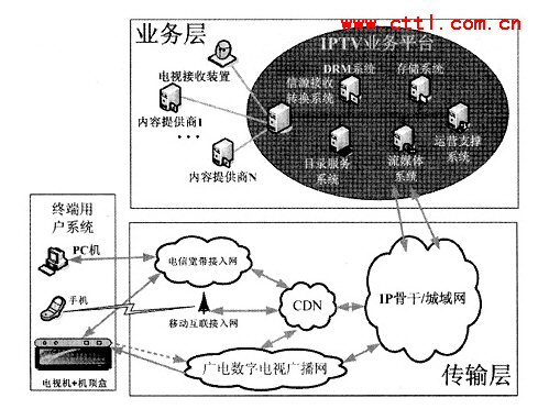 從上面的分析中可以看出。IPTV業(yè)務平臺具有明顯的NGN業(yè)務層特征,屬于NGN業(yè)務層部分;IPTV傳輸網絡具有明顯的NGN傳輸層特征,屬于NGN傳輸層部分;IPTV用戶終端設備具有明顯的NGN用戶終端特征。屬于NGN用戶終端部分。