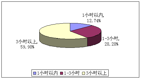 A、1小時以內(nèi)(12.74%) B、1-3小時(28.28%) C、3小時以上(59.98%)