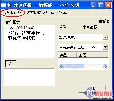 圖:清揚即時通信軟件(網(wǎng)絡(luò)版):兩臺電腦的網(wǎng)絡(luò)視頻會議