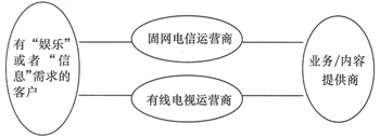 如圖1所示,雖然兩者使用的技術不同,但它們有一個相同的運營組織結構,也就是說,客戶、運營系統(tǒng)和業(yè)務/內容提供商是它們競爭的3要素,下面將從這幾個方面對IPTV與“數字電視”的競爭做簡要的分析。