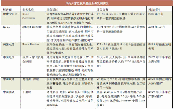 例如,在中國臺(tái)灣地區(qū),移動(dòng)運(yùn)營商已經(jīng)推出了基于3G移動(dòng)網(wǎng)絡(luò)的無線視頻監(jiān)控業(yè)務(wù),用戶可通過3G手機(jī)對(duì)家庭情況進(jìn)行監(jiān)控。同時(shí),3G家庭終端(前端監(jiān)控設(shè)備)具備專業(yè)的無線遠(yuǎn)程監(jiān)控功能,當(dāng)出現(xiàn)盜賊入侵、意外失火或是煤氣泄漏等狀況,它會(huì)把報(bào)警信息發(fā)送到主人手機(jī)上,讓主人及時(shí)獲悉并做出處理。3G家庭終端還可以根據(jù)指令拍攝下家中的實(shí)時(shí)視頻畫面,并發(fā)到主人手機(jī)中供以后取證,這對(duì)于中高端家庭來說,具有相當(dāng)?shù)恼T惑力。