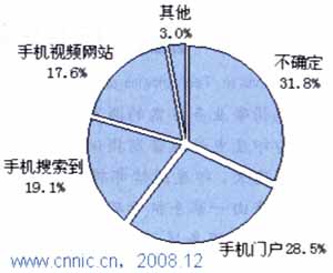 對(duì)于手機(jī)視頻用戶而言,目前最大的問題在于視頻圖像的播放延遲問題以及圖像質(zhì)量太差,兩者比例分別為 34.4%和33.9%。引起這兩種問題的最大因素是電信運(yùn)營商的網(wǎng)絡(luò)問題,目前的2.5G和2.75G網(wǎng)絡(luò)對(duì)于數(shù)據(jù)的快速傳輸仍有很大的瓶頸。