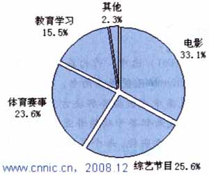 同時(shí),CNNIC還指出,在手機(jī)視頻用戶關(guān)注的內(nèi)容中,電影內(nèi)容位居第一,比例達(dá)到了33.1%,為手機(jī)設(shè)計(jì)的小電影節(jié)目,有很強(qiáng)的針對(duì)性,其內(nèi)容非常適合手機(jī)播放,在時(shí)間、節(jié)奏等方面,都有很好的控制,由于針對(duì)性地做了優(yōu)化,也成為手機(jī)視頻中最受用戶喜歡的業(yè)務(wù)。而綜藝節(jié)目和體育都有其特定的喜歡群體,使用關(guān)注度也非常高,分別為25.6%和23.6%。