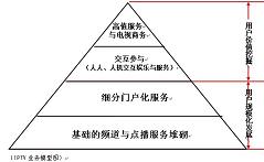 擁有4億多注冊用戶的騰訊,占有中國即時通信80%的市場份額,互聯(lián)網(wǎng)行業(yè)贏家通吃的定律顯露無疑,騰訊在海量用戶群基礎(chǔ)上開發(fā)的各種業(yè)務(wù)都在行業(yè)排名前列。當(dāng)電視服務(wù)的規(guī)模用戶群得以穩(wěn)固,基于用戶規(guī)模之上的多元化服務(wù)集成成為可能,對電視服務(wù)形成高度依賴的用戶群具備了價值挖掘的條件。人人交互、人機交互依托基礎(chǔ)的電視分眾門戶化應(yīng)用,形成了最初的用戶使用習(xí)慣;依托電視分眾門戶化集成的積累,建立用戶識別、用戶分析、收視分析、用戶數(shù)據(jù)交換的技術(shù)體系,用以支撐未來多元化娛樂與服務(wù)的開發(fā);贗PTV的交互能力,依托電視終端的易用性與舒適性,用戶價值、終端價值被充分挖掘,電視服務(wù)開始對其他媒介形式(含互聯(lián)網(wǎng))的用戶形成吸納。圍繞交互、商務(wù)需求的電子貨幣體系逐漸完善,電視進(jìn)入可有效運營、可便捷支付的良性的產(chǎn)業(yè)循環(huán),IPTV多元化業(yè)務(wù)之門打開。
