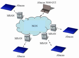端到端系統(tǒng)測(cè)試一般用于對(duì)一個(gè)完整的系統(tǒng)進(jìn)行功能及性能驗(yàn)證,或針對(duì)運(yùn)營(yíng)網(wǎng)絡(luò)的分布式測(cè)試。如圖2所示,一般將儀表部署于系統(tǒng)或網(wǎng)絡(luò)中的不同分支節(jié)點(diǎn),仿真系統(tǒng)中涉及的各種不同終端,然后不同終端之間發(fā)起大量的呼叫進(jìn)行測(cè)試。通過(guò)這種方式,不僅可以驗(yàn)證系統(tǒng)性能,甚至可以對(duì)網(wǎng)絡(luò)端到端的時(shí)延、網(wǎng)絡(luò)傳輸質(zhì)量進(jìn)行測(cè)試。