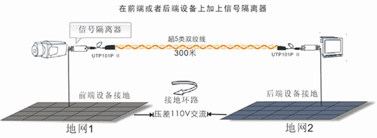 第二種方案是使監(jiān)控傳輸上的設(shè)備各點(diǎn)的相對(duì)地的電勢相同,一種方法是用一根導(dǎo)線把前端設(shè)備與后端設(shè)備的地連起來,但導(dǎo)線本身也存在電阻,效果并不是非常好,并且還需另外布線,增加了工程的復(fù)雜性;第二種方法是采用屏蔽的雙絞線,可是必然會(huì)對(duì)視頻信號(hào)有損耗,從而縮短傳輸距離。