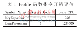 表1是CCS軟件Profile對各函數(shù)指令開銷的評估結(jié)果。