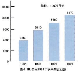 ——該公司成立于1992年,現(xiàn)在是日來(lái)第4大電話(huà)營(yíng)銷(xiāo)專(zhuān)業(yè)公司。該公司是從原福武書(shū)店的電話(huà)中心獨(dú)立出來(lái)的。福武書(shū)店的”進(jìn)研學(xué)習(xí)會(huì)”(類(lèi)似于中國(guó)的函授大學(xué))在日本全國(guó)擁有401萬(wàn)會(huì)員。對(duì)這些會(huì)員的客戶(hù)服務(wù)目前占TMJ業(yè)務(wù)的50%,盡管TMJ成立時(shí)間不長(zhǎng)。但由于積極引進(jìn)先進(jìn)技術(shù)(CTI,IVR,ACD,預(yù)撥號(hào))和先進(jìn)的管理方式,發(fā)展非常迅猛。1997年?duì)I業(yè)額達(dá)到81億7千萬(wàn)日元,總席位有1,500個(gè),外線(xiàn)數(shù)3,00O條,登錄業(yè)務(wù)代表達(dá)4,350人,該公司擁有6個(gè)呼叫中心(東京3個(gè),大販、名古屋、岡山各1個(gè)),每月平均呼入電話(huà)63萬(wàn)個(gè),呼出電話(huà)60萬(wàn)個(gè)。該公司的主要業(yè)務(wù)有:訂購(gòu)、預(yù)約受理、促銷(xiāo)活動(dòng)、銷(xiāo)售支持、客戶(hù)服務(wù)中心,其中面向消費(fèi)者/面向企業(yè)的比例為4∶1。圖6為T(mén)MJ公司1994年以來(lái)的營(yíng)業(yè)額。
