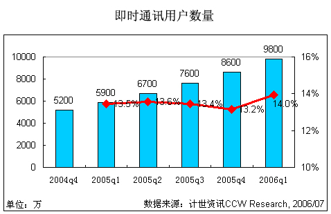 2006第一季度中國即時通訊用戶數(shù)接近1億
