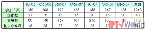 FG IPTV第七次會議共有來自全球近160名專家參加了會議,共收到文稿119篇。中國有20名專家參加了會議,提交文稿37篇,文稿主要集中在體系架構(gòu)、需求、安全、服務(wù)質(zhì)量、中間件等方面。此次會議的所有輸出文檔將輸入到相應(yīng)的研究組(SG)當(dāng)中。此次會議由于要對所有的輸出文檔進(jìn)行最后的整理、完善,因此日程非常緊張,每個(gè)工作組都幾乎每天工作到深夜,以便能夠保證所有輸出的工作文檔的質(zhì)量。