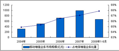 圖1 2008年1-6月中國移動通信增值業(yè)務市場規(guī)模