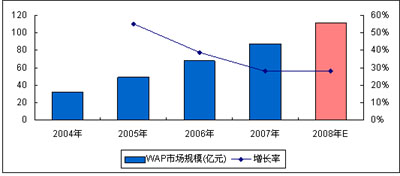 圖7 2008年中國WAP市場規(guī)模預測