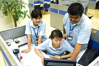 “玉不琢,不成器!彪m說目前社會的就業(yè)壓力源自于復(fù)雜的社會原因,可是在客服中心人力資源室的陳依群主管看來,有些還在于80后年輕人的自身原因!斑@些年我做招聘工作以來,看到了一些年輕人抱著希望進來以后,因為受不了壓力又退出了。在就業(yè)壓力巨大的情況下,多是獨生子女的80后一代,還沒有完全樹立起正確的就業(yè)觀和務(wù)實的工作態(tài)度。我們的原則是,凡是進入我們公司的員工和見習學(xué)生,都要經(jīng)歷嚴格的培訓(xùn),接受規(guī)范的管理,接受我們公司企業(yè)文化的熏陶。通過見習,我們也發(fā)現(xiàn)了很多真正會發(fā)光的優(yōu)秀人才!