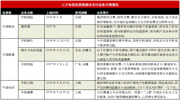 (三大電信運(yùn)營商移動(dòng)支付業(yè)務(wù)開展情況)