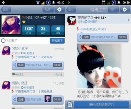 今年9月6日,夢想兄弟正式發(fā)布基于移動互聯網的社交工具語音微博,這款軟件結合了微博收聽人物、話題及智能手機特有的地理位置服務等元素,用戶可以實現直接錄音發(fā)布語音信息的功能,并且不收取任何費用,僅消耗流量。
