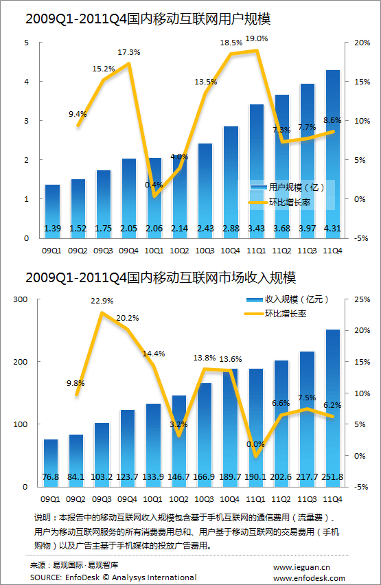 2011年國內(nèi)移動(dòng)互聯(lián)網(wǎng)用戶規(guī)模突破4億