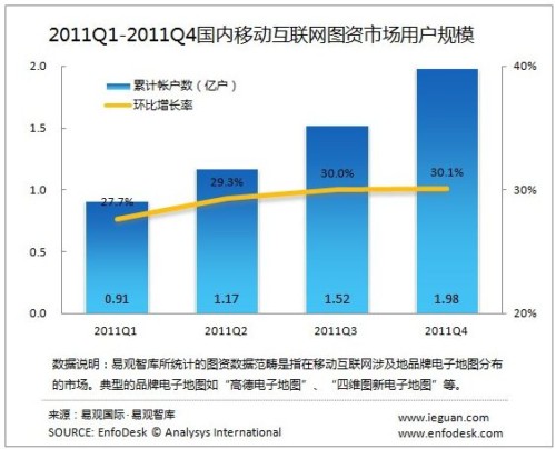2011Q4國內(nèi)移動互聯(lián)網(wǎng)圖資市場用戶規(guī)模達1.98億戶