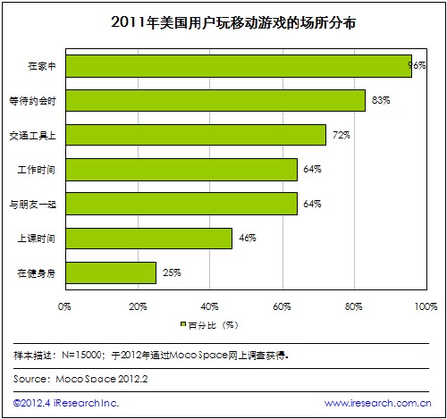 艾瑞:2011年美國用戶更傾向于在家中玩移動游戲