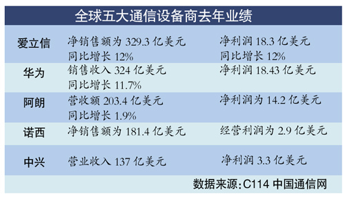 通信設(shè)備市場全球前5強中國占2席