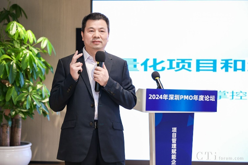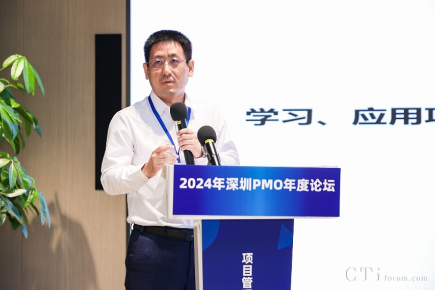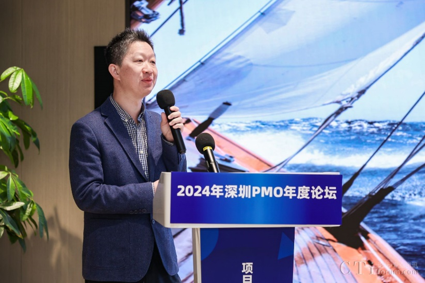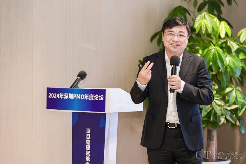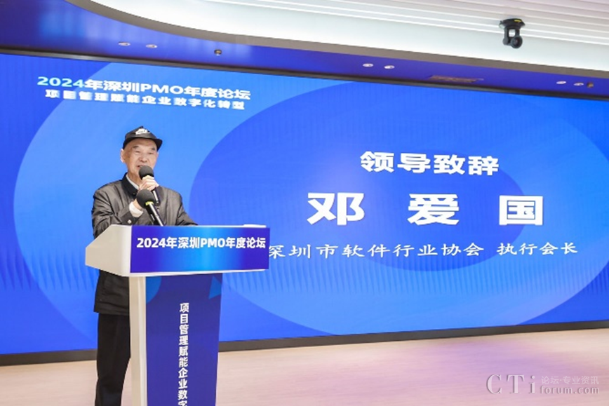 深圳市軟件行業(yè)協(xié)會執(zhí)行會長鄧愛國發(fā)表了熱情洋溢的致辭。他強調(diào)了PMO在數(shù)字化轉(zhuǎn)型中的關(guān)鍵作用,并表達了對與會者們的熱烈歡迎和對論壇的殷切期望。他表示,PMO是項目管理中的重要角色,承擔著承上啟下的作用,對于企業(yè)數(shù)字化轉(zhuǎn)型的成功至關(guān)重要。