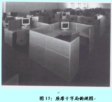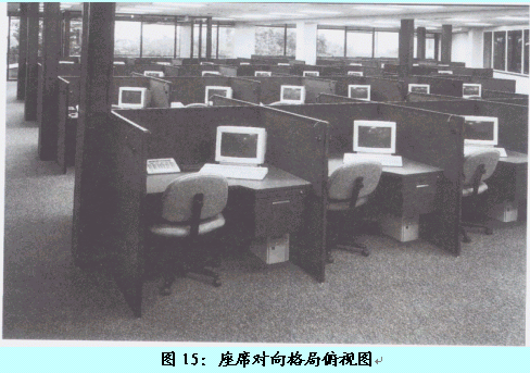 。。在此格局中,客服代表采用兩兩面面相對的方式進(jìn)行辦公,但位于同一側(cè)的客服代表是相同面向的。