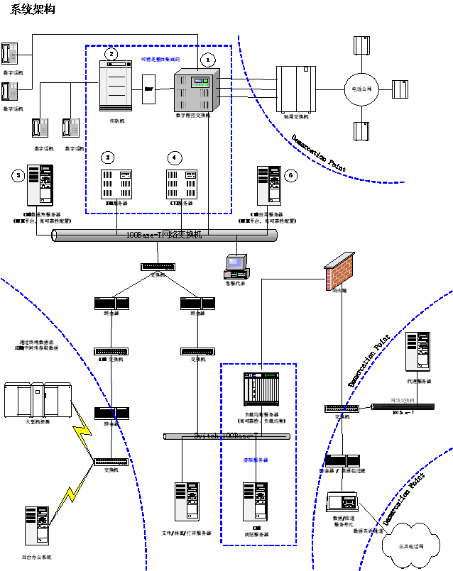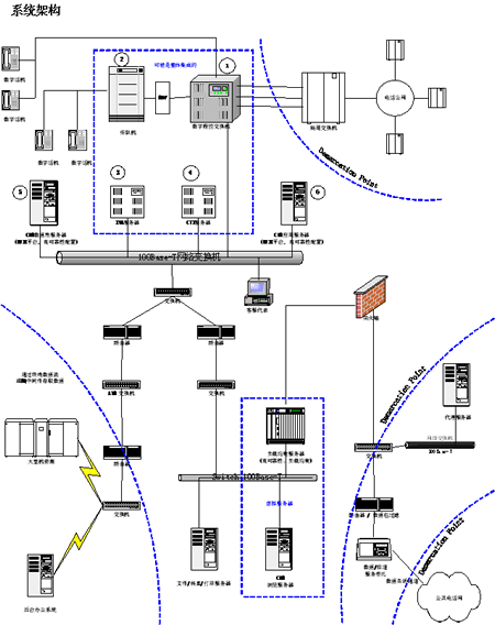 。。下面的圖表根據(jù)組件(硬件、軟件和網(wǎng)絡架構)及各組件間的連接(接口)“設計”了目標呼叫中心系統(tǒng)。在協(xié)作中,這些架構組件提供了運行需求系統(tǒng)需要的技術服務。