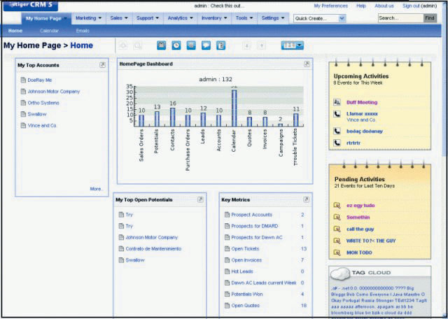 vtiger CRM是一個主要面向中小企業(yè)的開放源碼CRM軟件,是一款易安裝、企業(yè)級、免費的CRM軟件。它建立在許多開源組件上,提供更豐富的使用界面、報表、轉(zhuǎn)移工具,并支持多種數(shù)據(jù)庫。vtiger CRM使用快速高效且久經(jīng)考驗的LAMP/WAMP(Linux/Windows、Apache、MySQL和PHP)技術(shù)以及其他開源工具開發(fā)。