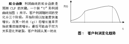 客戶利潤曲線除了倒“U”形外,可能還有各種其它形狀。其它形狀CLP預測的關(guān)鍵是找到合適的客戶利潤曲線擬合函數(shù)。為此公司需要建立一個客戶利潤曲線擬合函數(shù)庫,庫中存放各種形狀實際客戶利潤曲線的擬合函數(shù)。當客戶歷史利潤曲線不符合倒“U”形變化規(guī)律時,在庫中尋找新的擬合函數(shù)。如庫中沒有現(xiàn)成的滿足要求的擬合函數(shù),則建立新的擬合函數(shù),并加入庫中。擬合函數(shù)確定后,參照倒“U”形CLP的預測方法和步驟便不難算出當前客戶的CLP。當前分析型CRM系統(tǒng)具備的數(shù)據(jù)庫技術(shù)、數(shù)據(jù)挖掘技術(shù)、知識發(fā)現(xiàn)技術(shù)等有效的智能工具去識別客戶利潤曲線,進而確定擬合法中的各參數(shù),可以容易的計算出CLP。