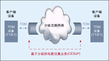 圖1:通過分組交換網(wǎng)絡實現(xiàn)的電路仿真業(yè)務。