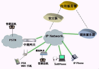 IP媒體服務器位于網(wǎng)絡的業(yè)務層,它在網(wǎng)絡中的位置如下圖所示: