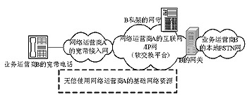 再次,VoIP低廉的價格除了其自身成本的優(yōu)勢外還有更深層的東西,那就是傳統(tǒng)的電信網(wǎng)間結(jié)算體系的缺陷。還是上面的例子,業(yè)務(wù)運營商B的VoIP可以“落地”到自己服務(wù)區(qū)域內(nèi)的PSTN網(wǎng)上,然后通過自己的長途電話網(wǎng)傳送語音,最后與其他電信運營商的PSTN本地網(wǎng)進行互聯(lián)來完成一次長途通話過程。這也是國內(nèi)沒有本地網(wǎng)資源的運營商經(jīng)營VoIP業(yè)務(wù)最常用的一種做法(通常這被作為新興運營商大舉搶占主導(dǎo)固網(wǎng)運營商市場的有效手段如圖2所示)。由于本地接入費僅為0.06元/分鐘,因此只要業(yè)務(wù)運營商B只要將VoIP的價格設(shè)為0.07元/分鐘,在長途電話網(wǎng)傳輸成本很低的情況下,他也可以實現(xiàn)盈利。從這個角度我們可以看出,VoIP的低資費從根本上看可以說是現(xiàn)行電話網(wǎng)網(wǎng)間結(jié)算費過低造成的,是以“犧牲”本地網(wǎng)電信運營商的利益為代價而換來的,此網(wǎng)間結(jié)算機制勢必造成沒有本地網(wǎng)資源的虛擬運營商可以近乎無償?shù)卣加兄鲗?dǎo)運營商的Metcalfe價值,甚至可以借此進行惡性價格戰(zhàn)來搶奪主導(dǎo)網(wǎng)絡(luò)運營商的用戶及收入,這樣必然會使主導(dǎo)網(wǎng)絡(luò)運營商在沒有積極性投入本地網(wǎng)建設(shè)和互聯(lián)網(wǎng)建設(shè)的同時,對網(wǎng)間互聯(lián)設(shè)置種種障礙,結(jié)果無疑會導(dǎo)致整個VoIP產(chǎn)業(yè)的惡性發(fā)展。