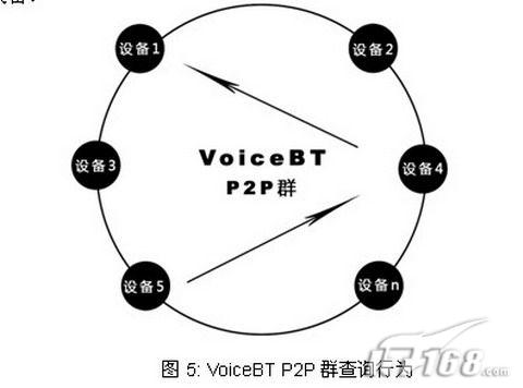 查詢行為如圖5所示:1—n 號(hào)設(shè)備組合在一起形成一個(gè)智能P2P群;第n號(hào)設(shè)備只要和第1-5號(hào)設(shè)備中的任意一個(gè)設(shè)備撥打過網(wǎng)絡(luò)電話,則第n號(hào)設(shè)備就加入了這個(gè)VoiceBT群。如果5號(hào)設(shè)備需要尋找1號(hào)設(shè)備,當(dāng)他發(fā)現(xiàn)1號(hào)設(shè)備的撥號(hào)序列和IP地址定位信息丟失以后,它可以向VoiceBT
