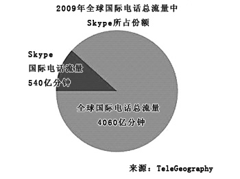 盡管全球的國際長途電話呼叫量增長在減緩,但是Skype的業(yè)務量卻急劇上升。2008年,Skype網(wǎng)內(nèi)用戶間的國際長途呼叫量的增幅高達51%,2009年這一增幅達到63%,達到540億分鐘。如今,Skype已經(jīng)成為全球最大的跨境通話服務提供商。