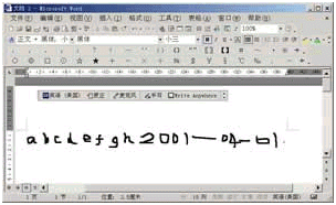 安裝成功后,你會(huì)從圖16中看到一個(gè)手寫圖標(biāo),接下來我們就可以使用手寫識(shí)別功能啦。首先,你必須在屏幕上選定書寫區(qū)域,可以是屏幕上類似于筆記本橫格紙的輸入板,也可以在屏幕上任意的位置書寫。我們可通過使用手寫輸入設(shè)備或移動(dòng)鼠標(biāo)墊上的鼠標(biāo)來形成文字,從而完成書寫,手寫文字將被自動(dòng)識(shí)別,并輸入到程序的插入點(diǎn)處。就像通常在紙張表面上一樣,你可以使用草書、印刷體或二者兼而有之地進(jìn)行書寫,書寫時(shí)不必每寫完一個(gè)字母后作停頓,可輸入整個(gè)單詞并在單詞之間留出空格。