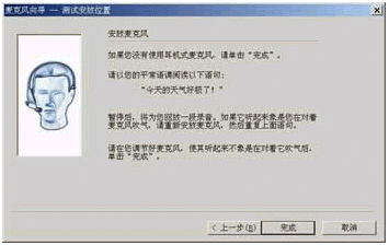 。2)現(xiàn)在你看到的是"安放麥克風(fēng)"對(duì)話框(如圖5所示),如果你沒有使用頭戴式麥克風(fēng),那么就可以點(diǎn)擊"完成"按鈕。