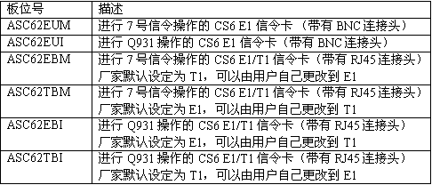 注意(Note):ASC62EBM和ASC62TBM的唯一不同之處就是E1/T1接口選擇模塊的缺省設(shè)置值不同。在兩種型號的板卡中,用戶都可以通過移動模塊來選擇是進(jìn)行E1操作還是進(jìn)行T1操作。
