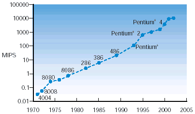 1 圖4顯示了處理器處理能力隨時(shí)間的增長(zhǎng)而快速增長(zhǎng),以證明摩爾定律。