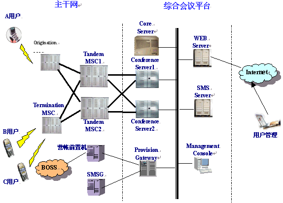 概述 。。今年來,隨著電話會議技術的不斷成熟,基于計算機平臺的會議型業(yè)務應用越來越活躍,其中電話會議系統(tǒng)、QQ聊天系統(tǒng)以及BGM便是主要熱門應用。 。。交互式電話會議系統(tǒng)是一個真正由用戶自己管理的智能型交互式電話會議系統(tǒng),是目前國際上流行的一種召開會議的新形式?蛻衾盟梢噪S時隨地召開本市、國內(nèi)或國際的電話會議,人們無論身在何處,只需撥打一個事先約定的電話會議號碼和密碼,即可參加會議,并且能自由組會,同時發(fā)言,自由交談?梢酝瑫r招開數(shù)十方,適用于商務研討、緊急討論會、信息匯總會、親友聚會等各種各樣的會議。