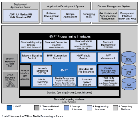 (HMP)軟件產(chǎn)品,用于在基于Dialogic構(gòu)架之上的普通服務(wù)器上進(jìn)行媒體處理任務(wù),而無需專門的硬件支持。使用該軟件提供的媒體服務(wù),能夠構(gòu)建出靈活的、可擴(kuò)充的、低成本的下一代IP媒體服務(wù)器。