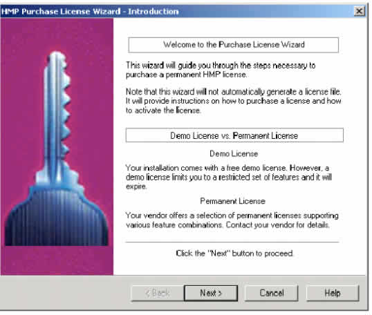 2. 在HMP許可證管理器窗口中(圖16),點(diǎn) How to Purchase License...按鈕。HMP購買許可證導(dǎo)航將出現(xiàn)(圖17)。該向?qū)⒁徊讲街笇?dǎo)你購買一個(gè)永久的HMP許可證。
