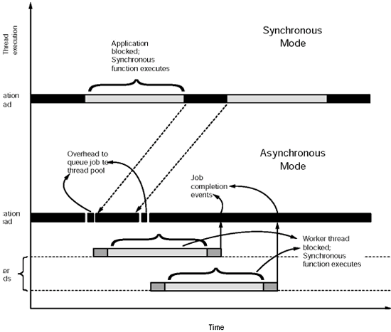 如前所述,使用額外的線程可以讓主應(yīng)用線程不必去等待同步函數(shù)的執(zhí)行。也就是說(shuō),應(yīng)用程序可以繼續(xù)處理它的邏輯,而不會(huì)被執(zhí)行中的同步函數(shù)阻塞。